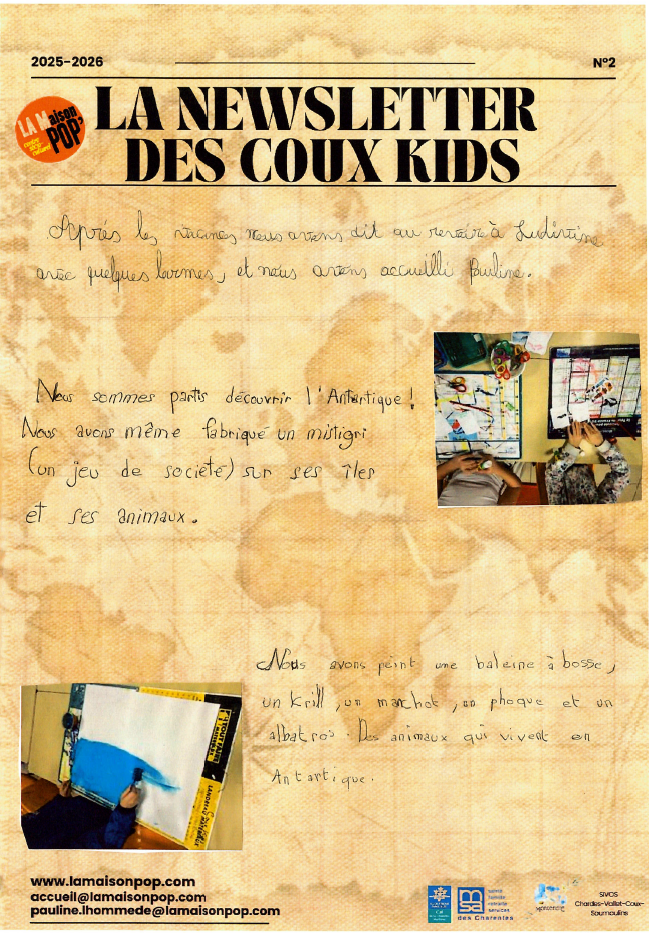 Chaque mois une newsletter, pour découvrir le quotidien des Coux kids ! Rédigé par les enfants eux-mêmes, cette gazette aura tout pour vous plaire !