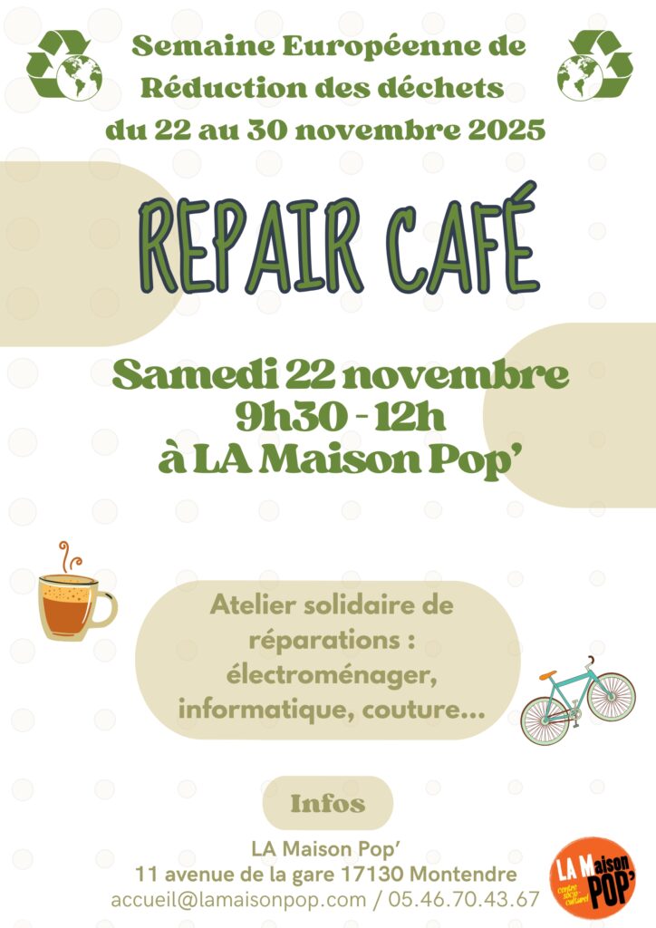 « Tous les Évènements Repair Café sam 22 novembre à 9 h 30 min - 12 h 00 min « Conseil d’Administration ouvert Bourse aux plantes #4 » Ajouter au calendrier Google Agenda iCalendar Outlook 365 Outlook Live Détails Date : sam 22 novembre Heure : 9 h 30 min - 12 h 00 min Organisateur LA Maison Pop’ Phone 0546704367 E-mail accueil@lamaisonpop.com Lieu LA Maison Pop’ 11 avenue de la gare Montendre, + Google Map 0 commentaire Laisser un commentaire Annuler la réponseVotre adresse e-mail ne sera pas publiée. Les champs obligatoires sont indiqués avec * Nom * E-mail * Site internet Qu’avez vous à l’esprit ? Enregistrer mon nom, mon e-mail et mon site dans le navigateur pour mon prochain commentaire. Δ