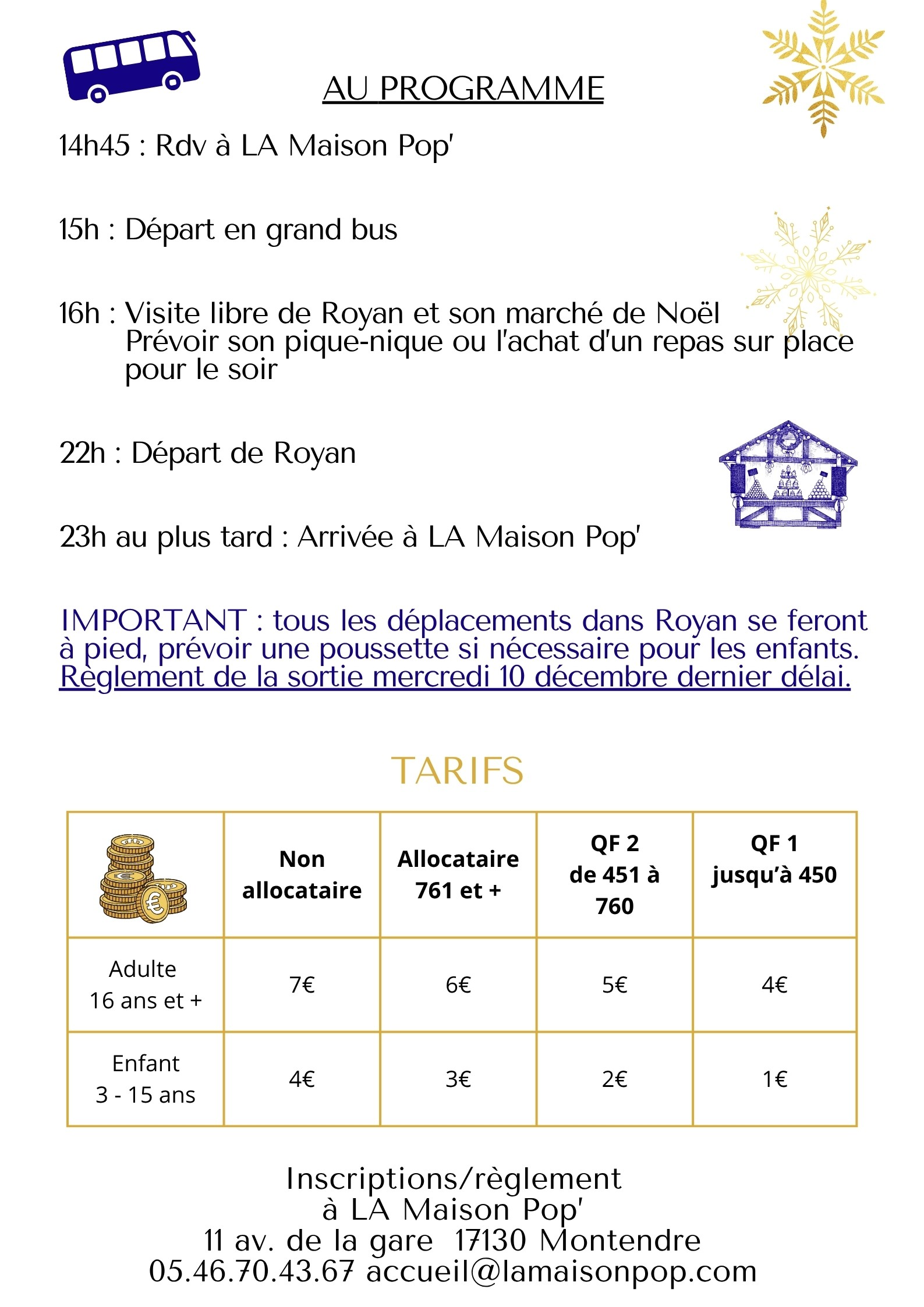 L’ensemble des informations ainsi que les tarifs, sont indiqués sur les images, et pour toute demande d’information complémentaire, et/ou pour les inscriptions : appelez-nous au 05.46.70.43.67 ou venez-vous voir à LA Maison Pop’, 11 avenue de la gare 17130 Montendre.